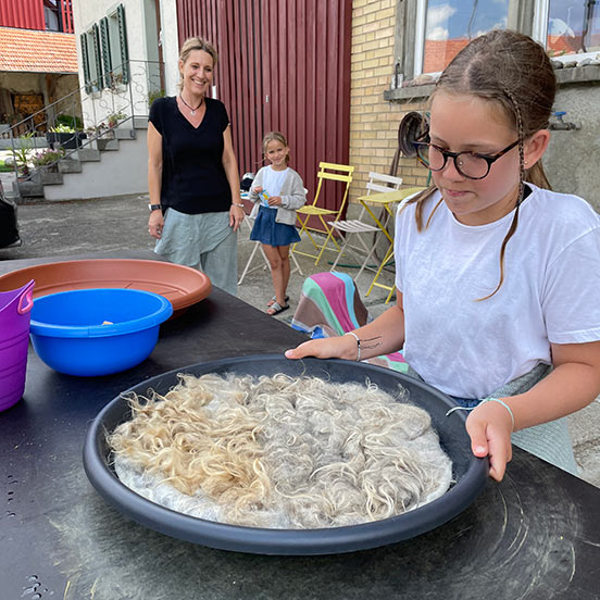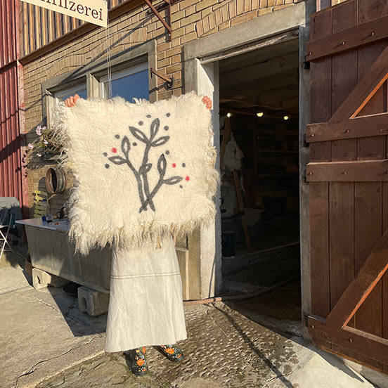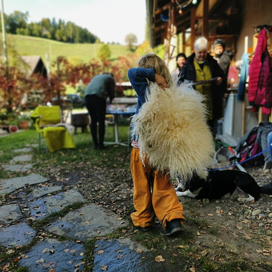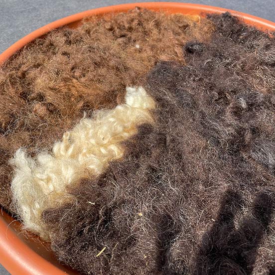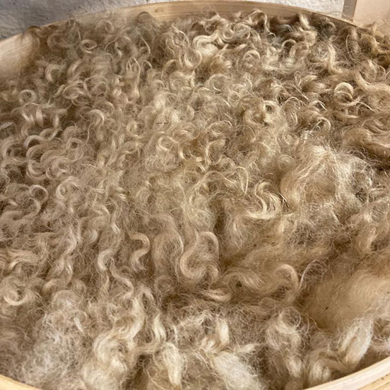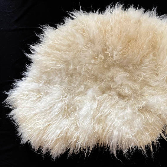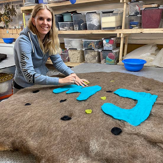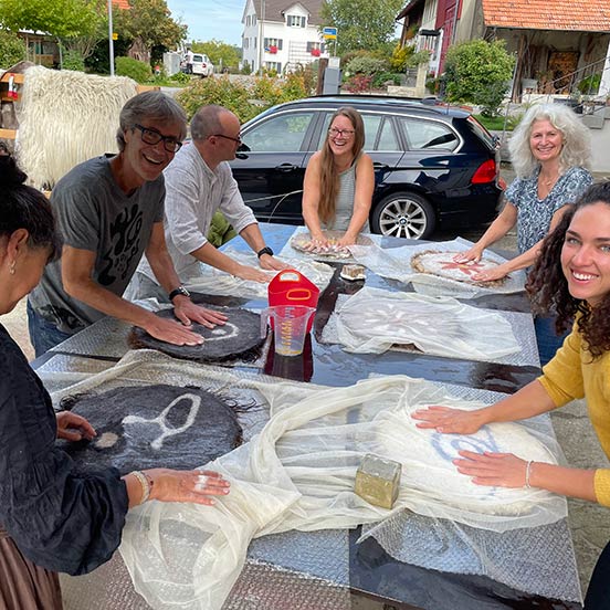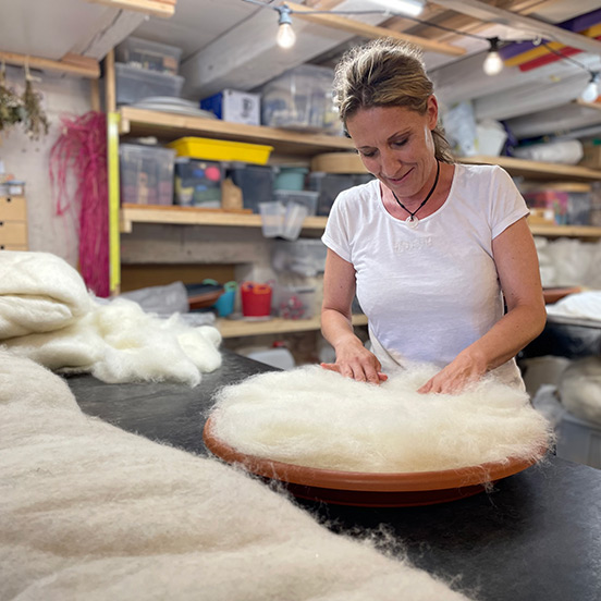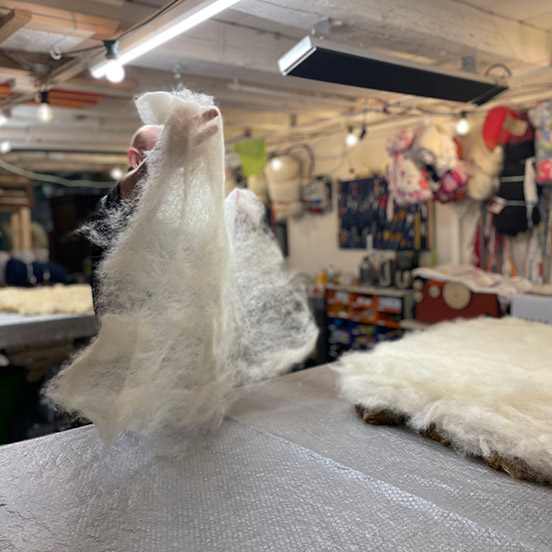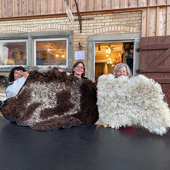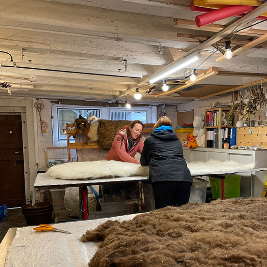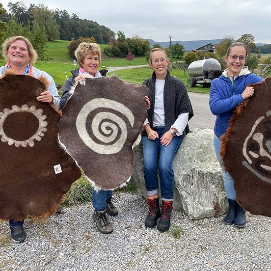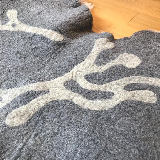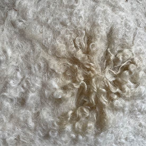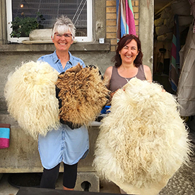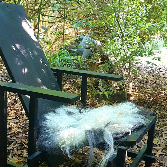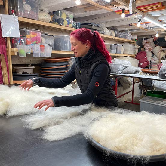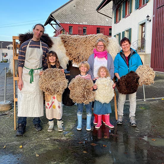 Ein grosses Schafwollfell mit Walliser Schwarznasenlocken filzen.
