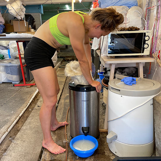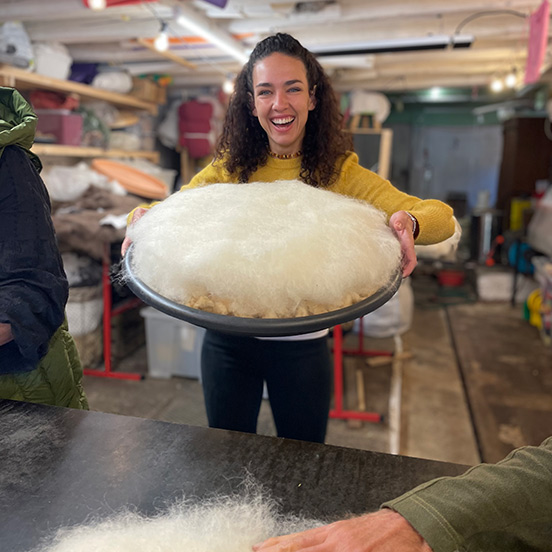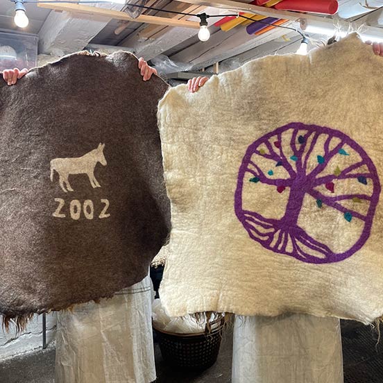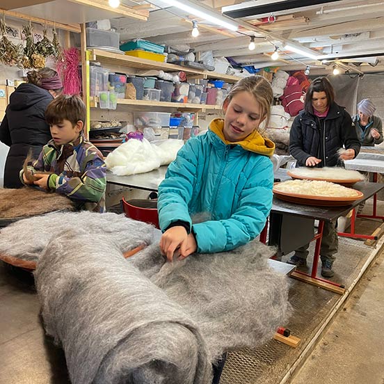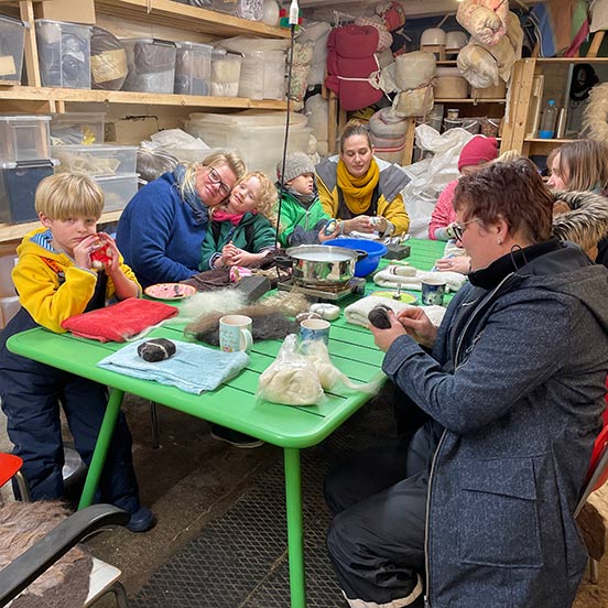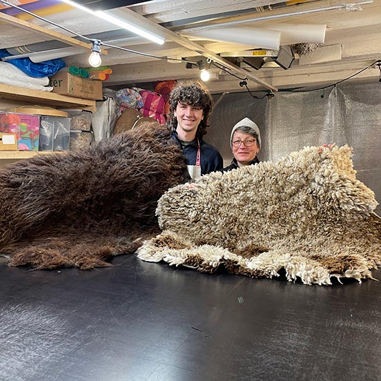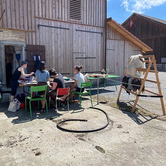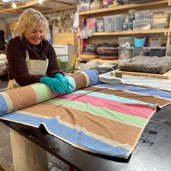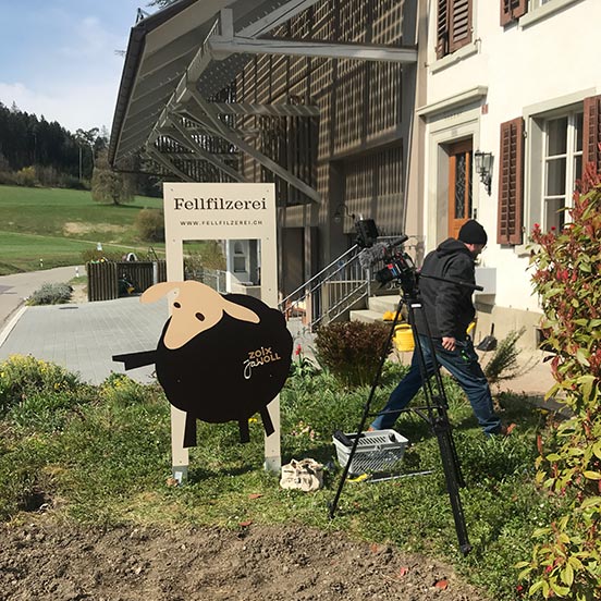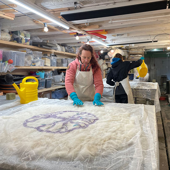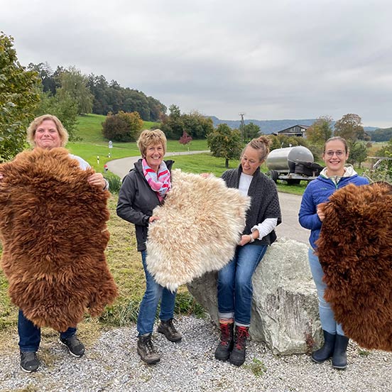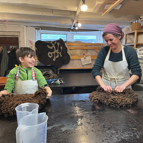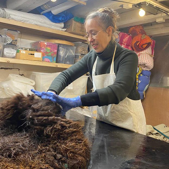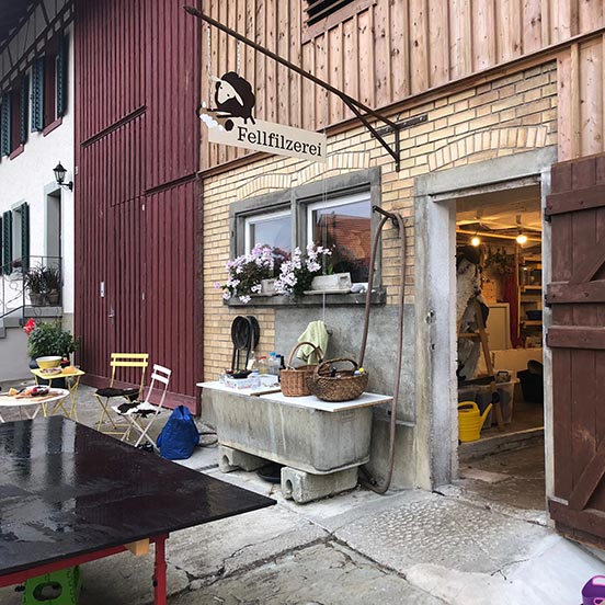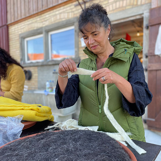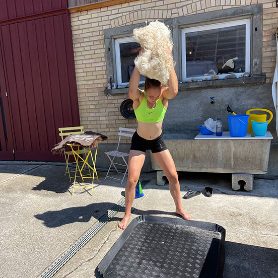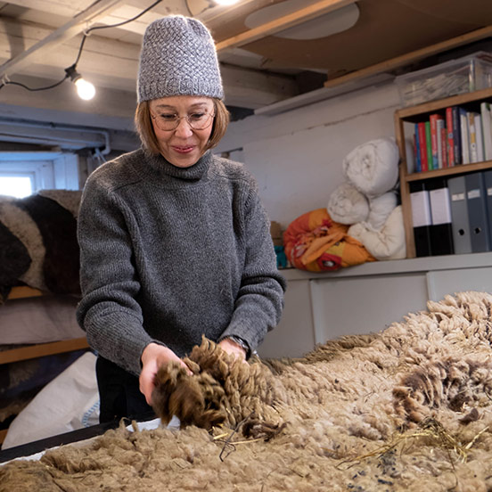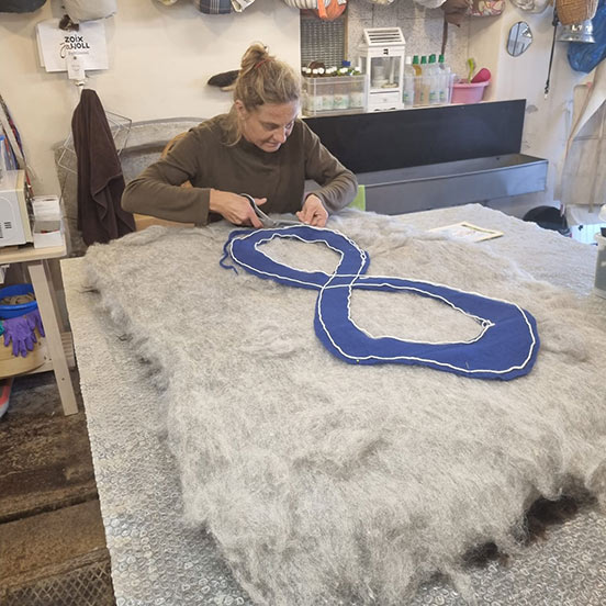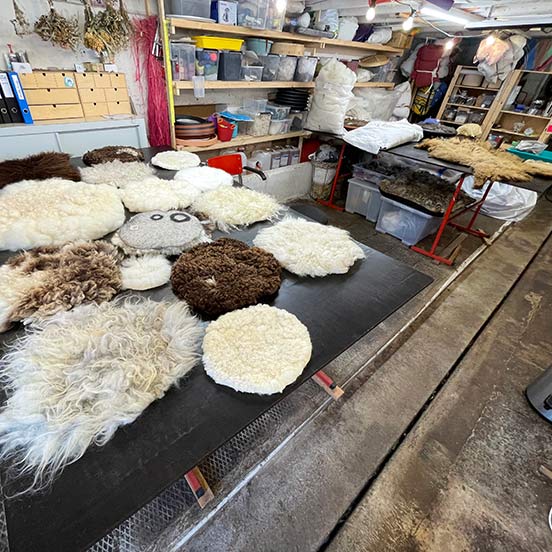 Ein grosses Schafwollfell mit Walliser Schwarznasenlocken filzen.