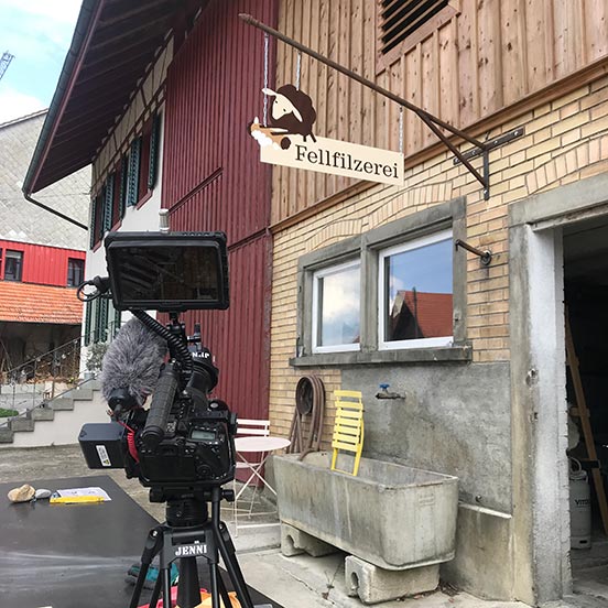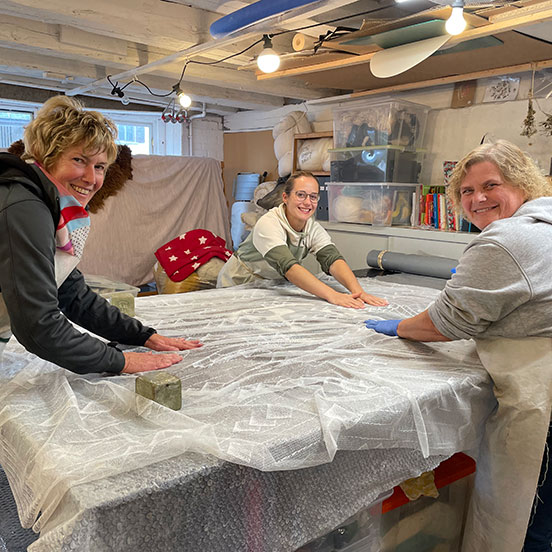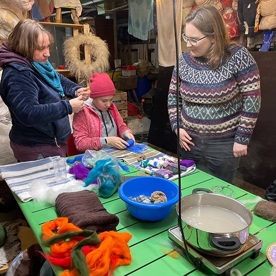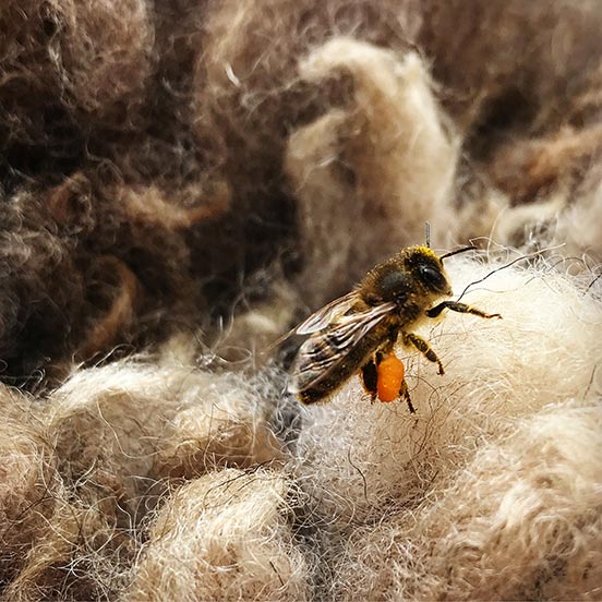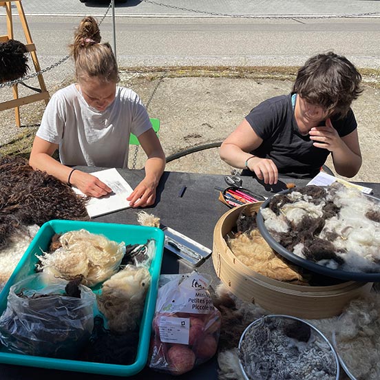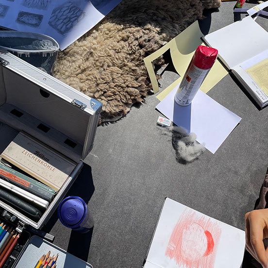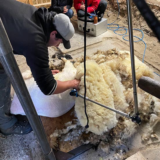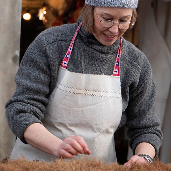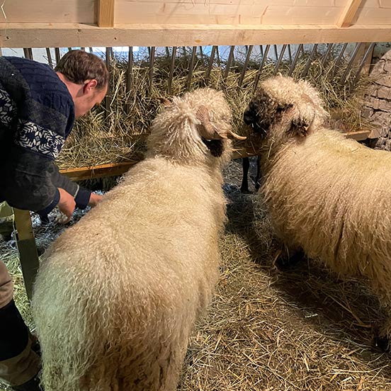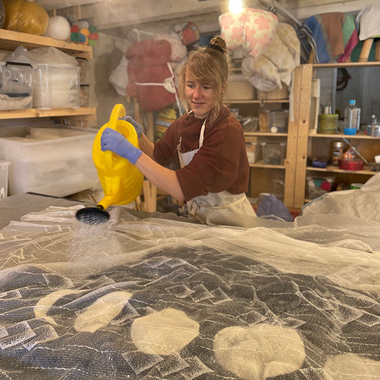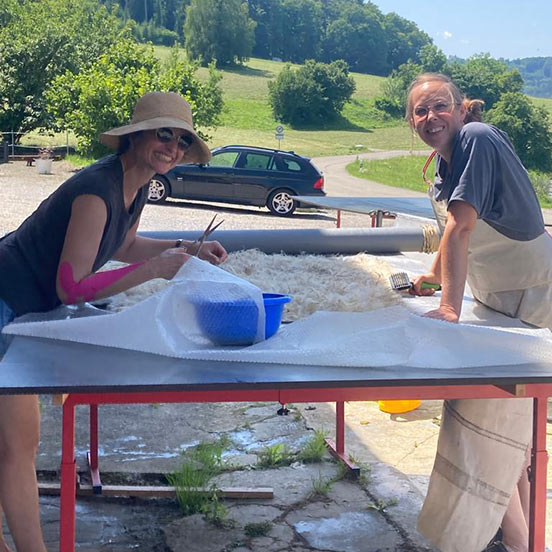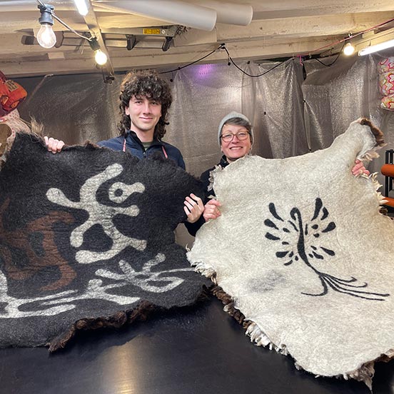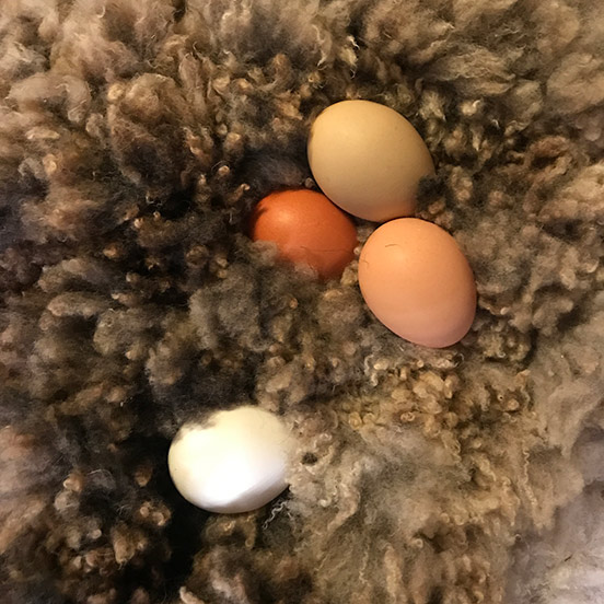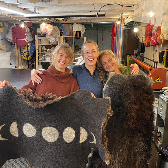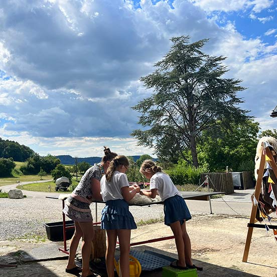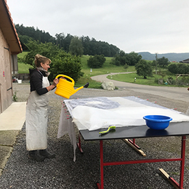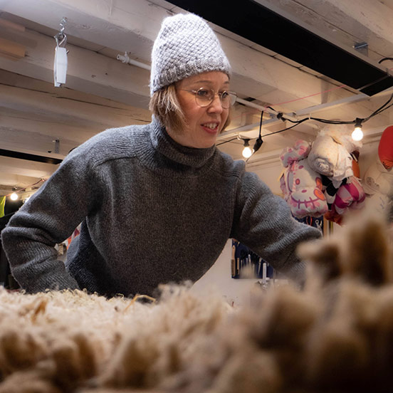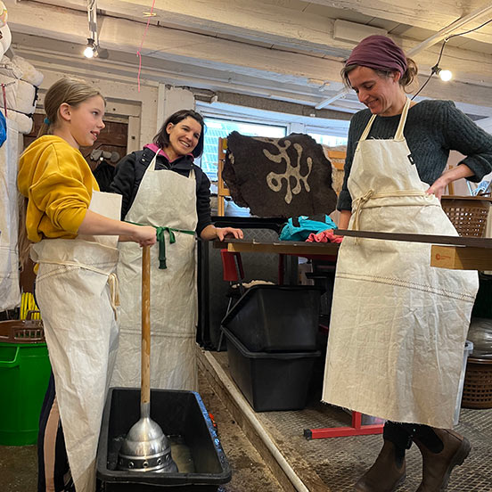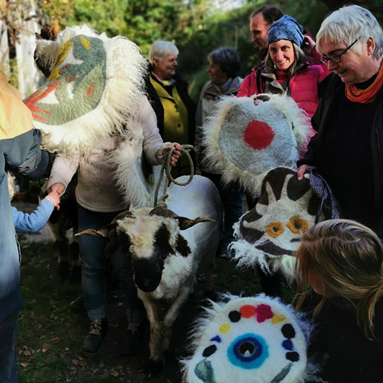 Ein grosses Schafwollfell mit Walliser Schwarznasenlocken filzen.