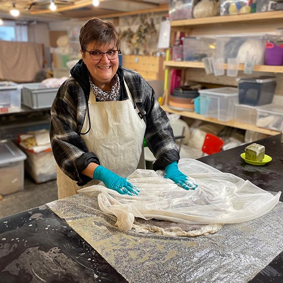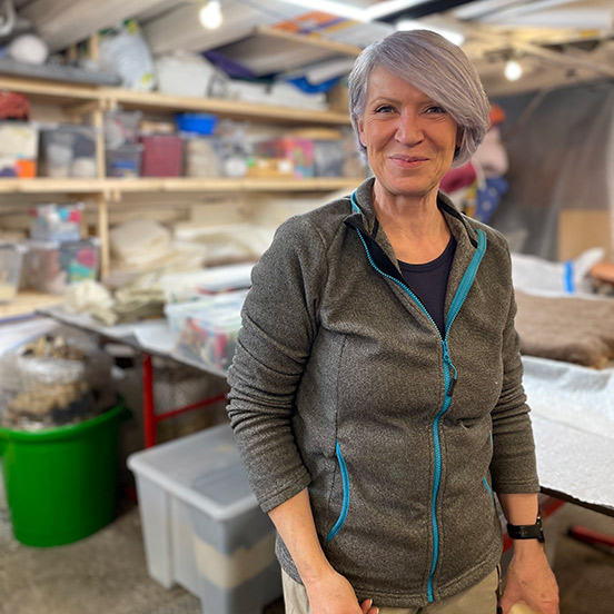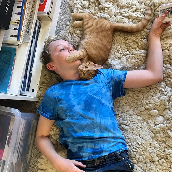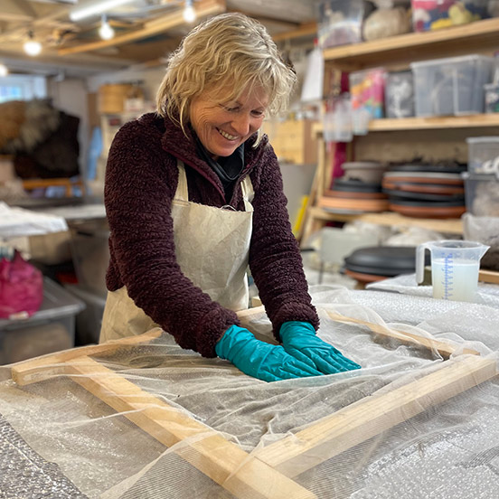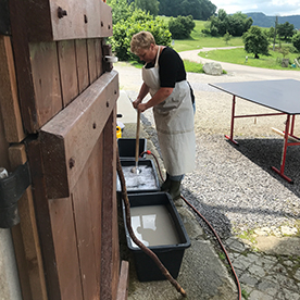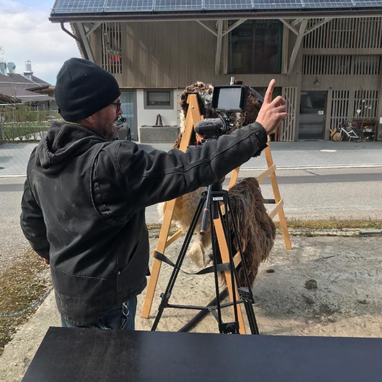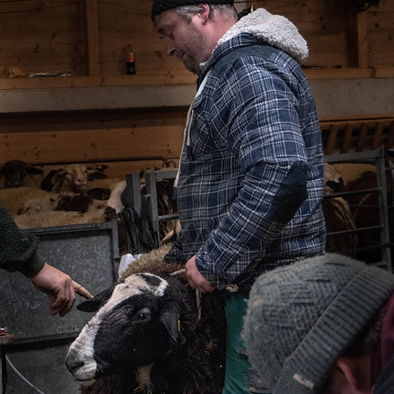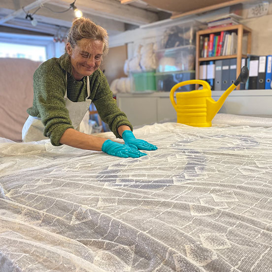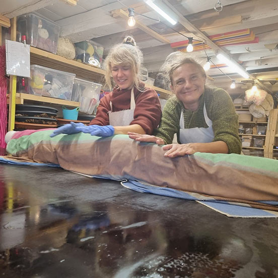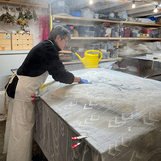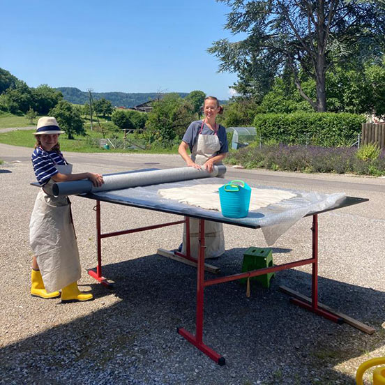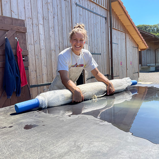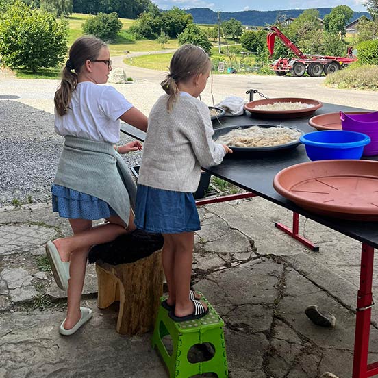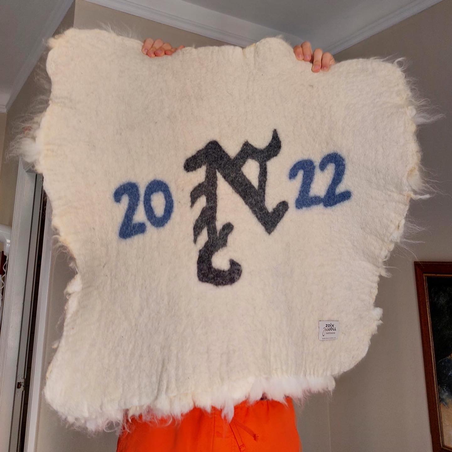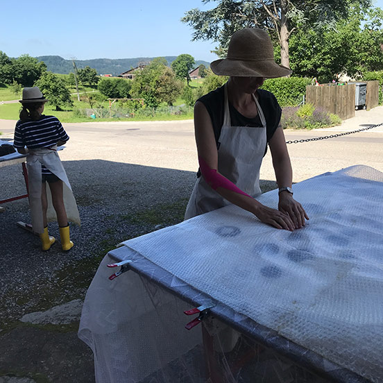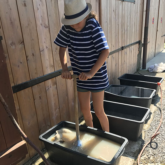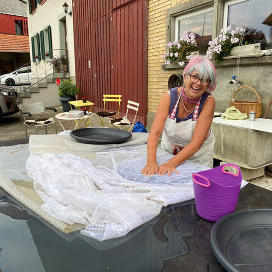 Ein grosses Schafwollfell mit Walliser Schwarznasenlocken filzen.
