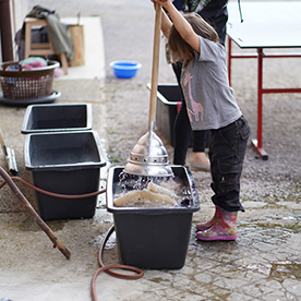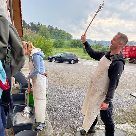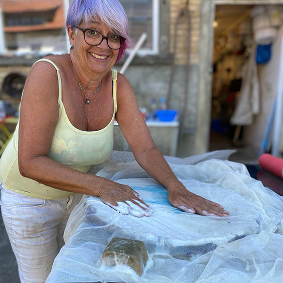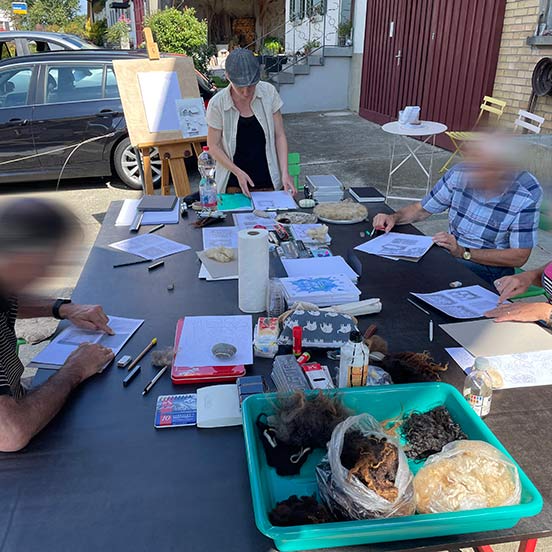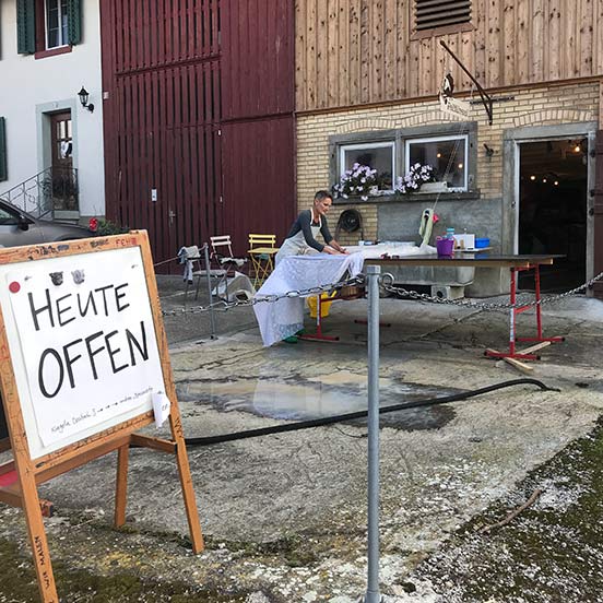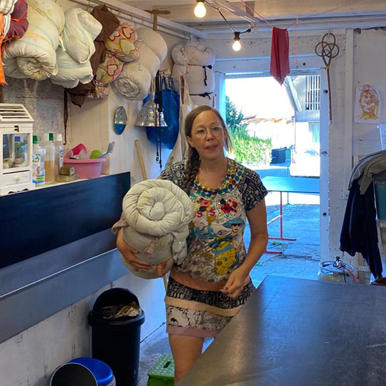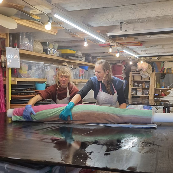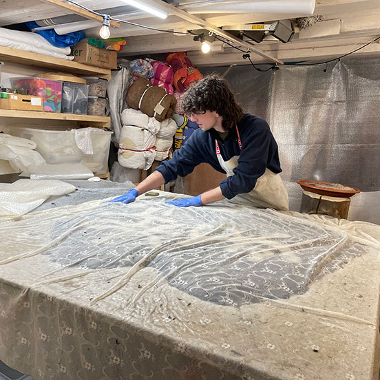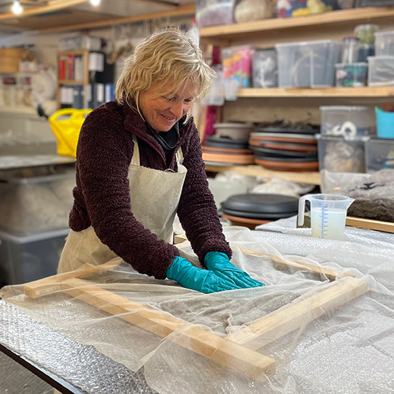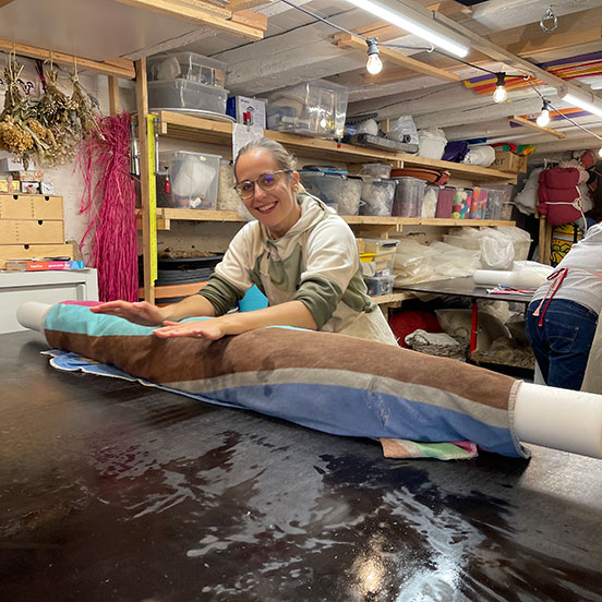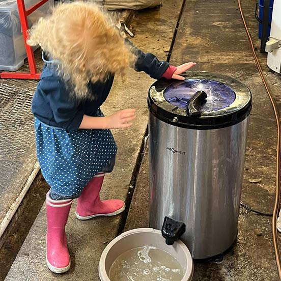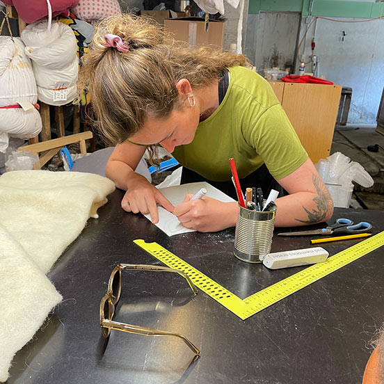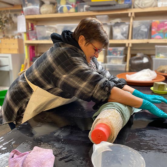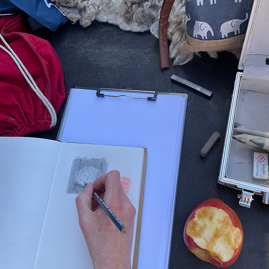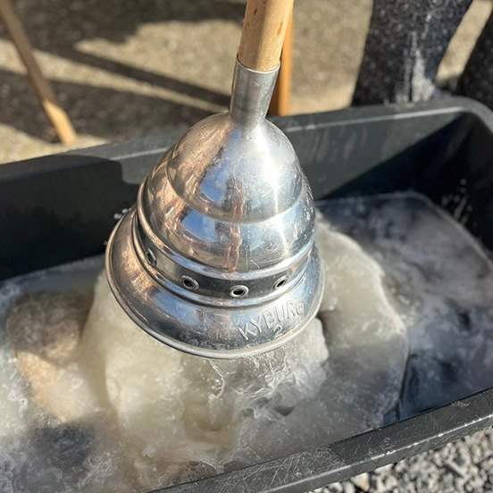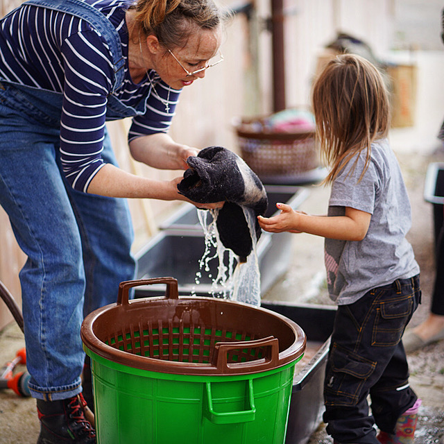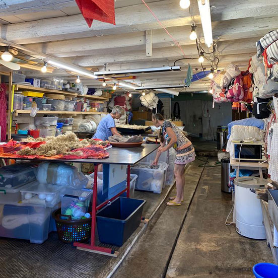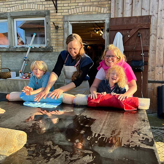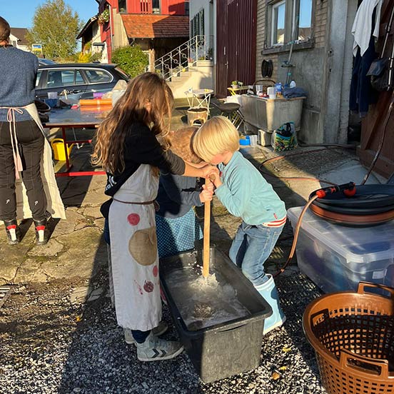 Ein grosses Schafwollfell mit Walliser Schwarznasenlocken filzen.