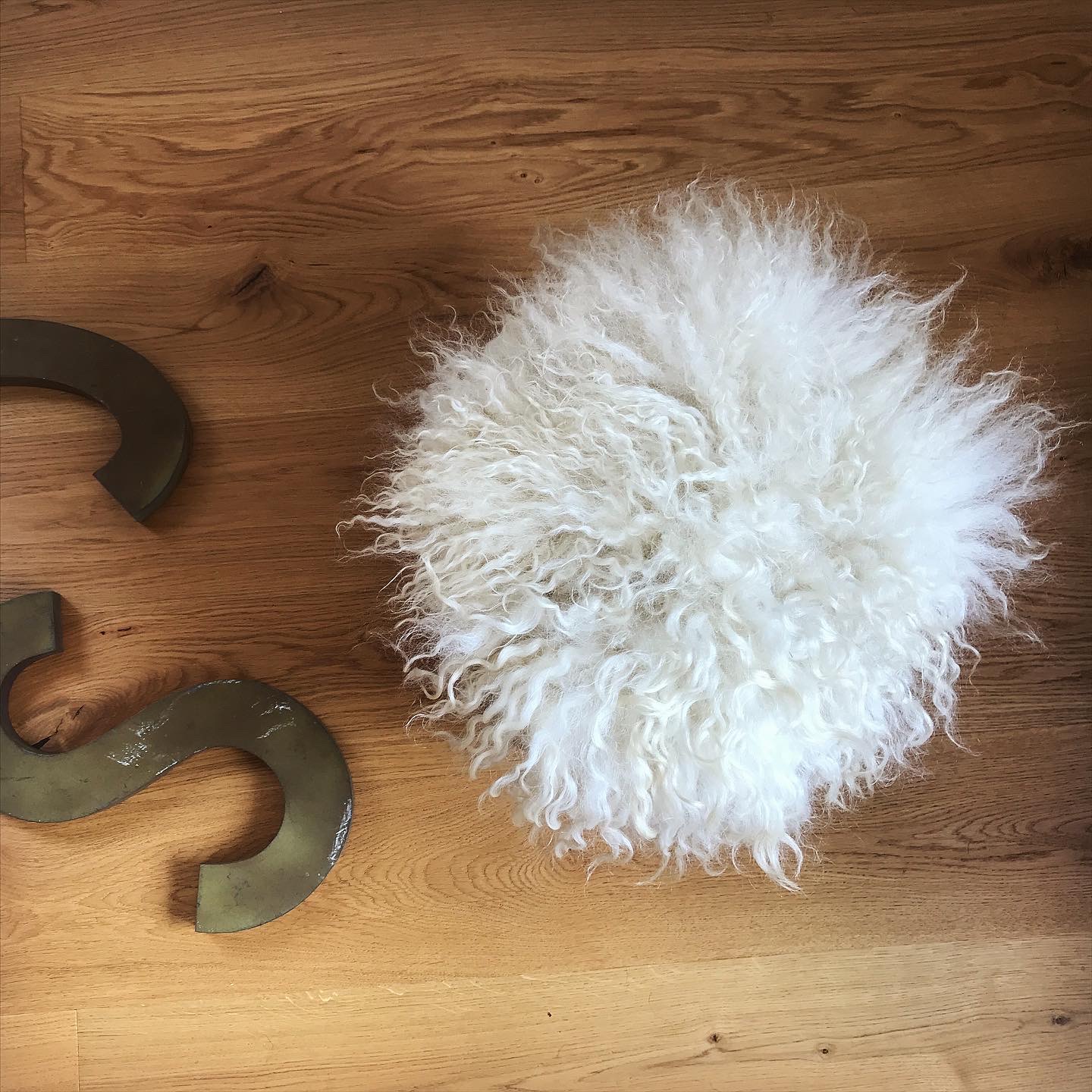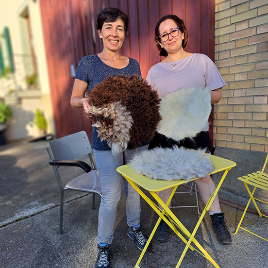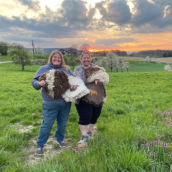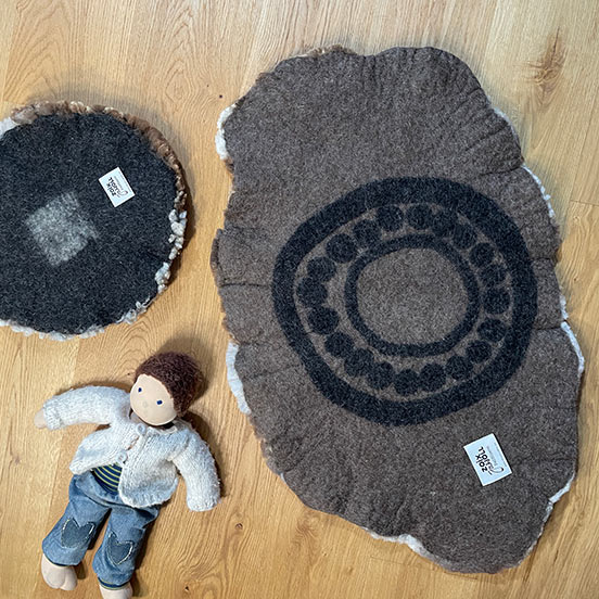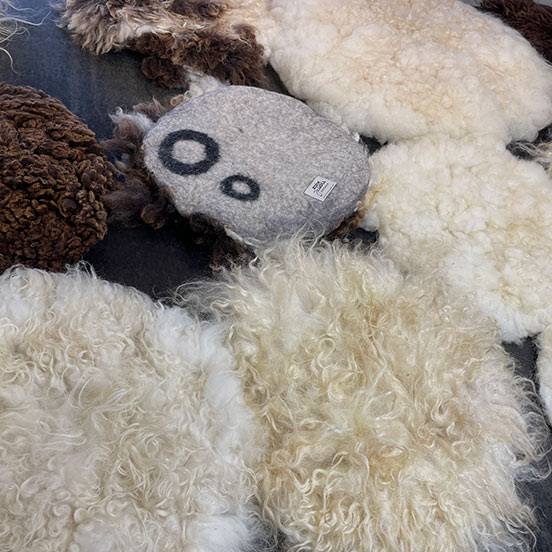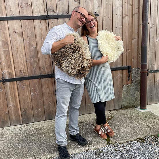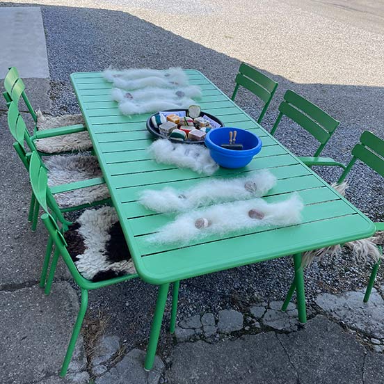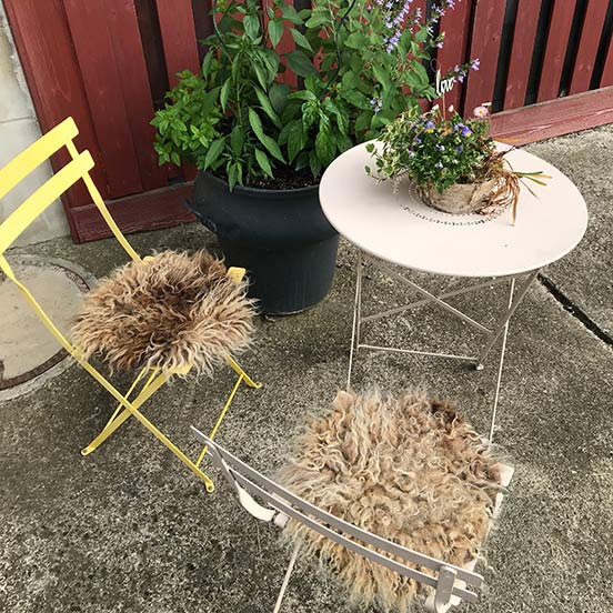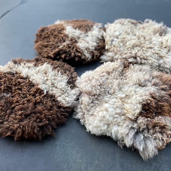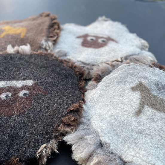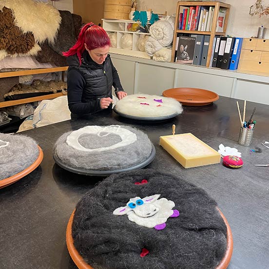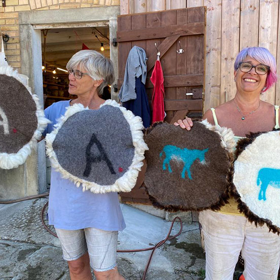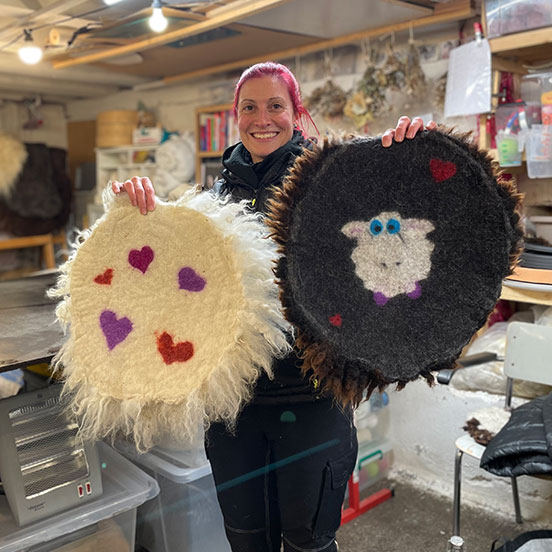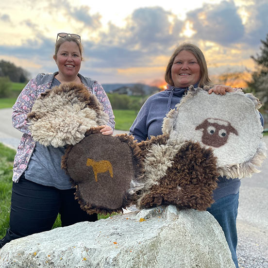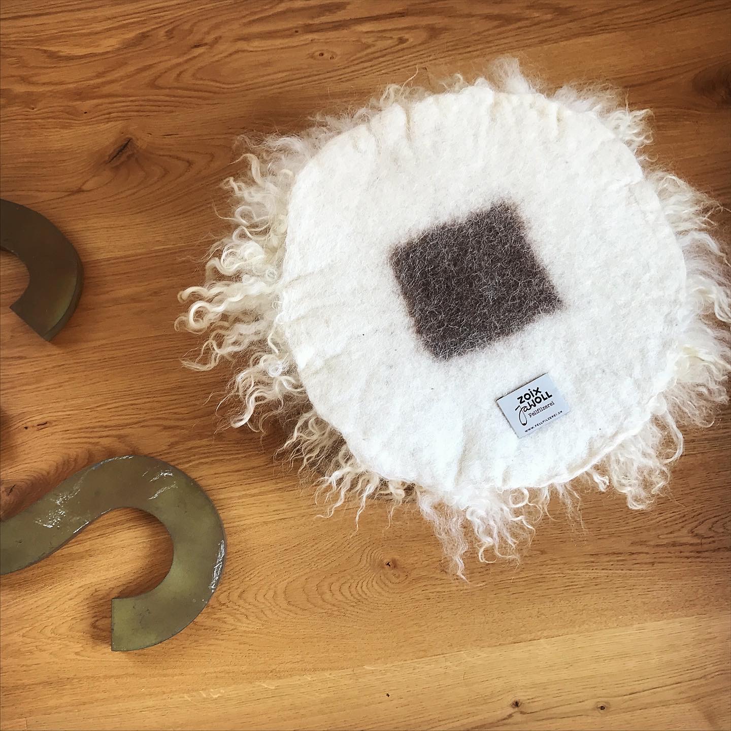Zwei Sitzkissen mit Walliser Schwarznasenlocken filzen.