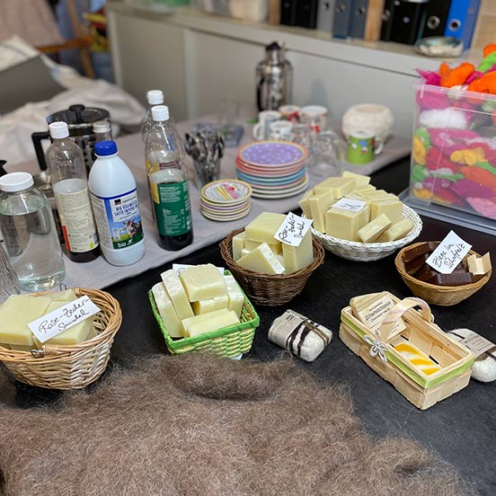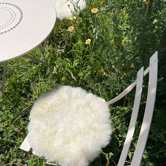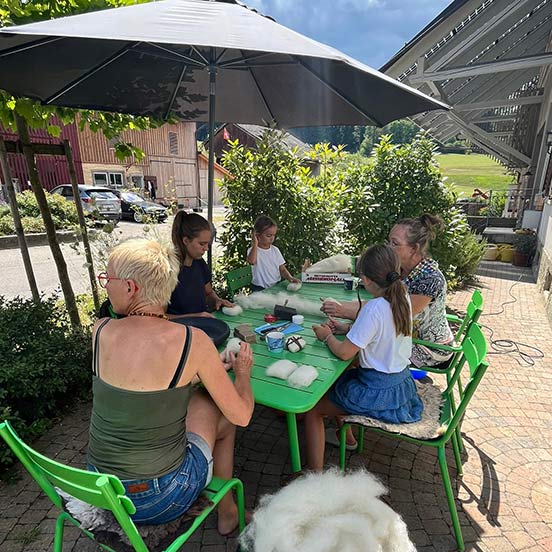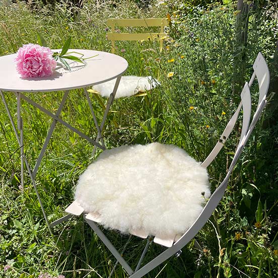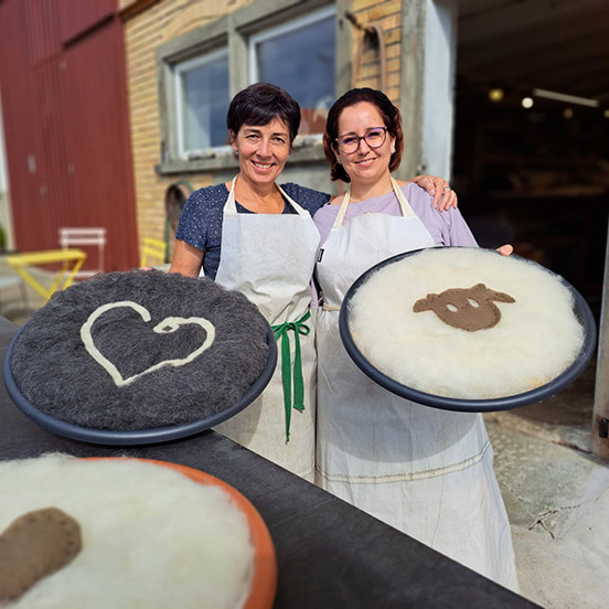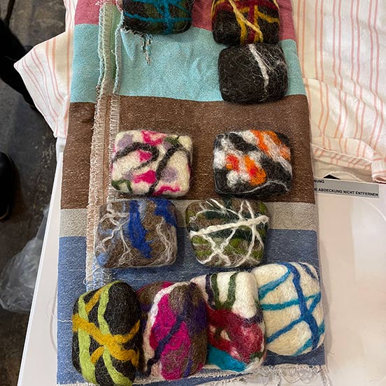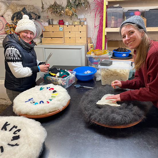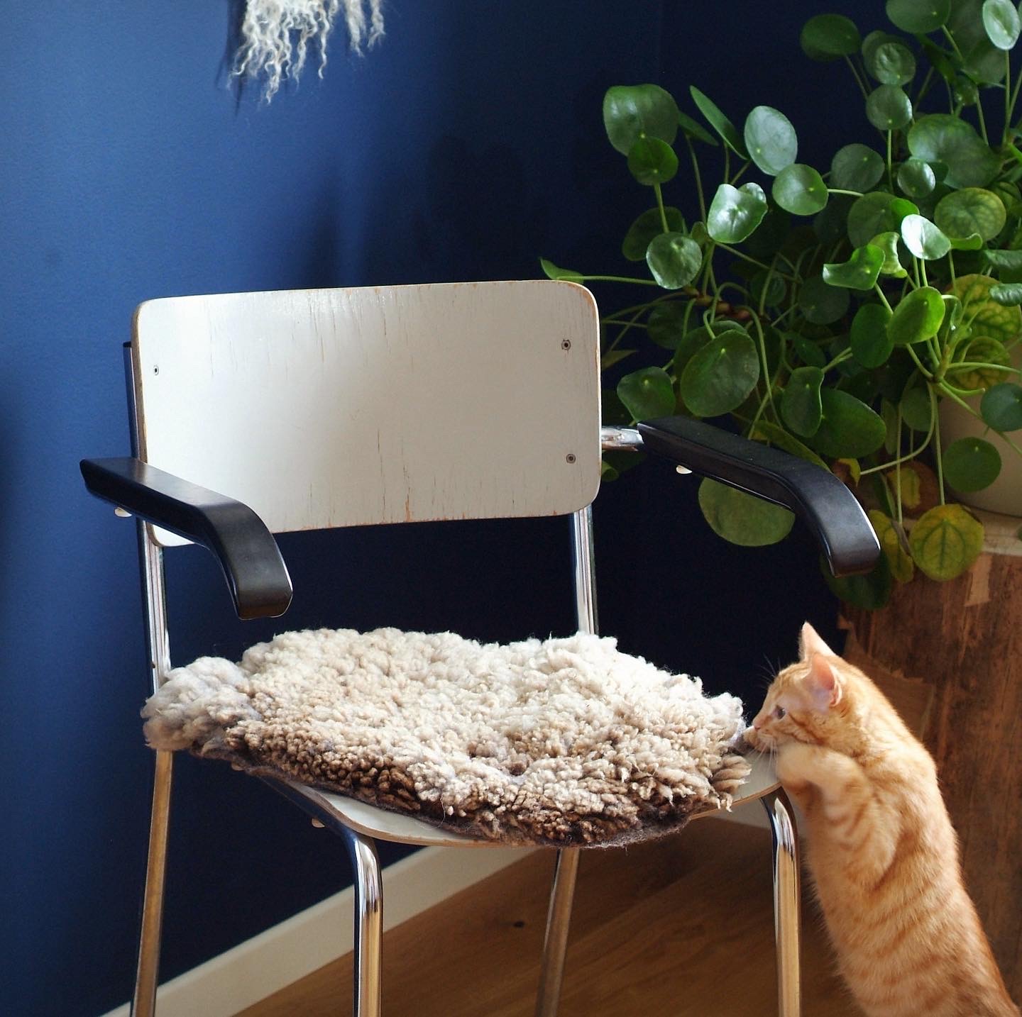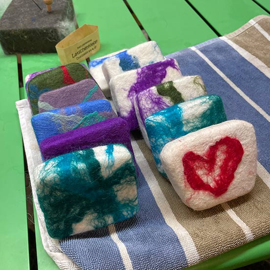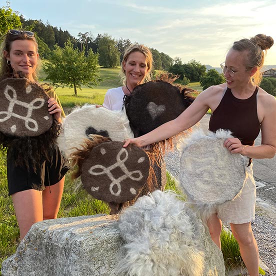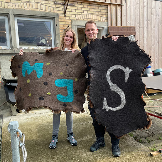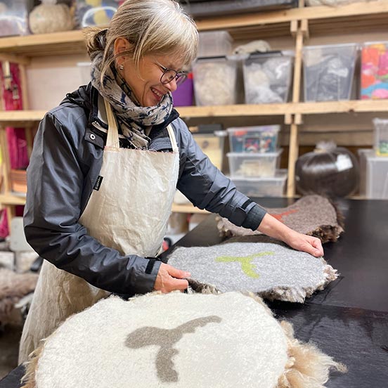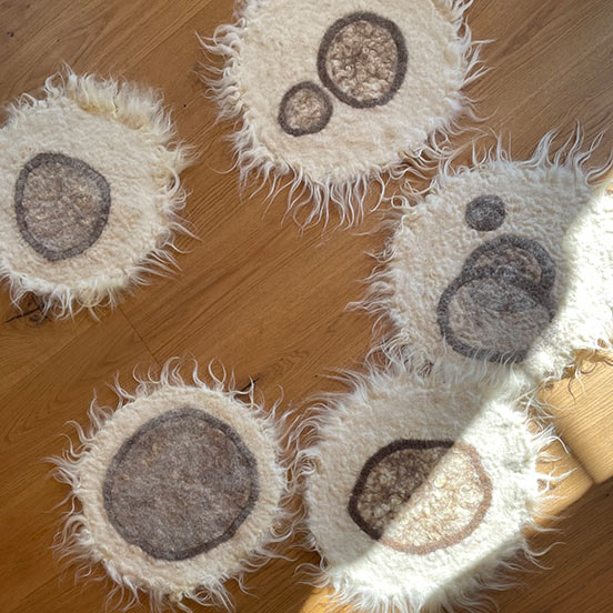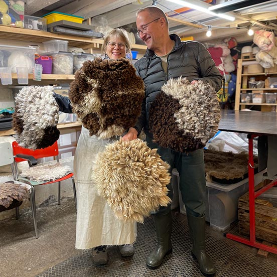 Zwei Sitzkissen mit Walliser Schwarznasenlocken filzen.