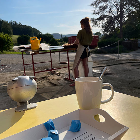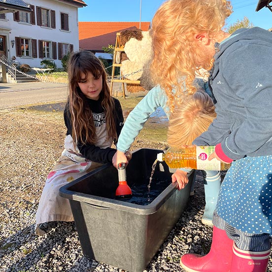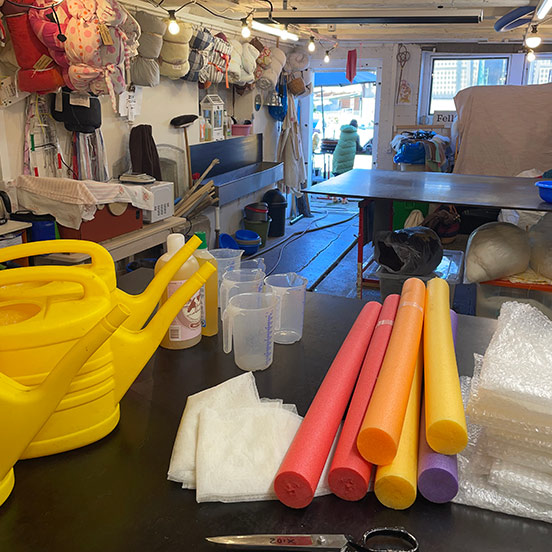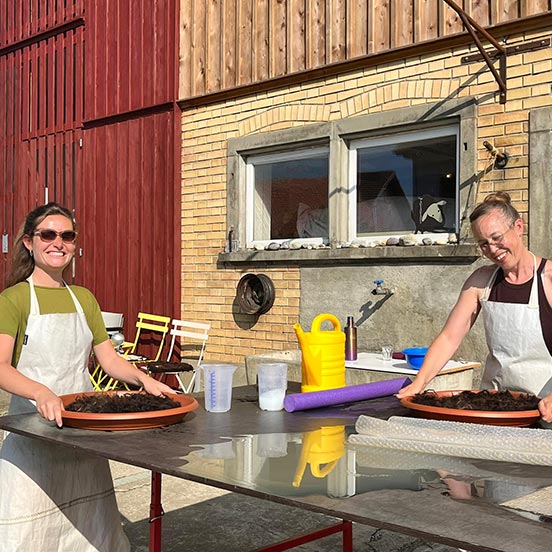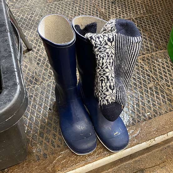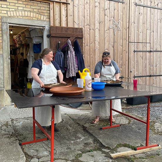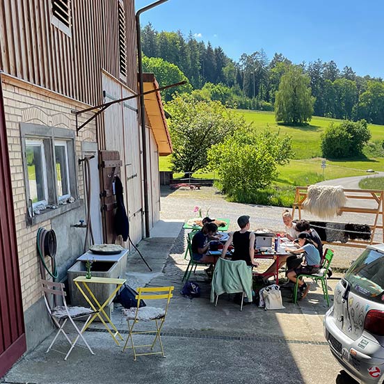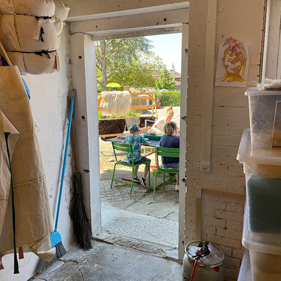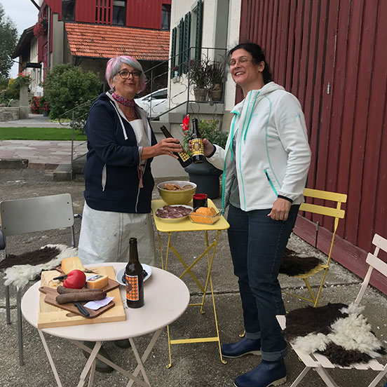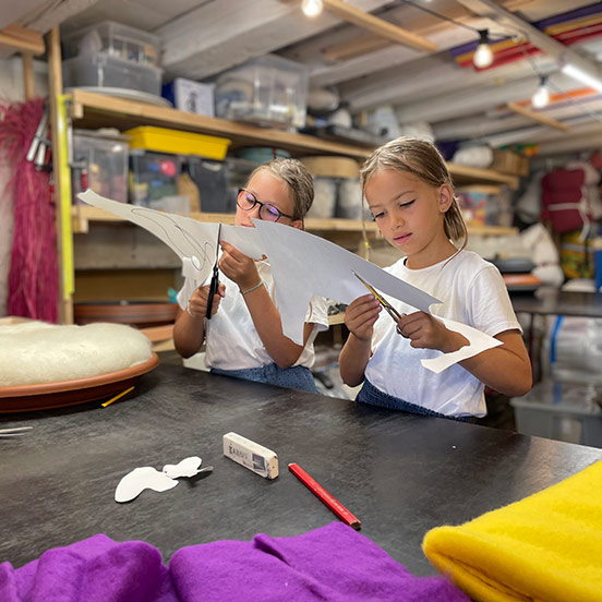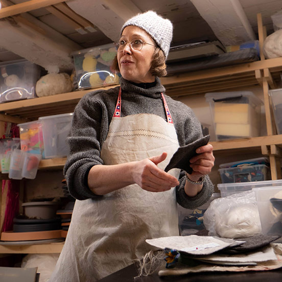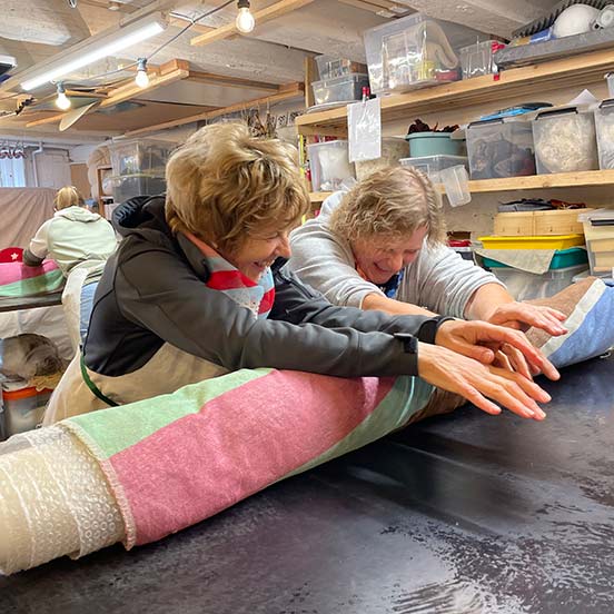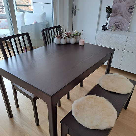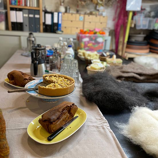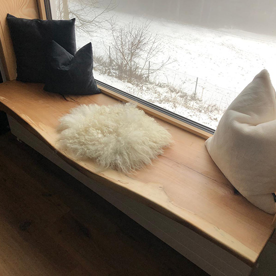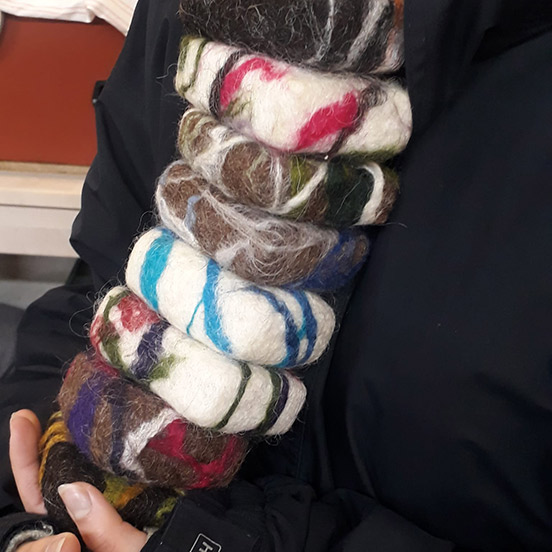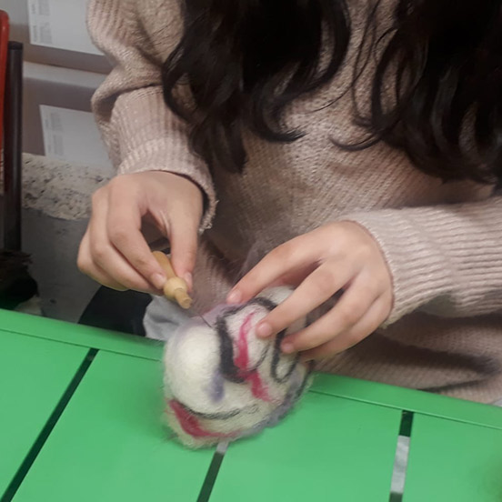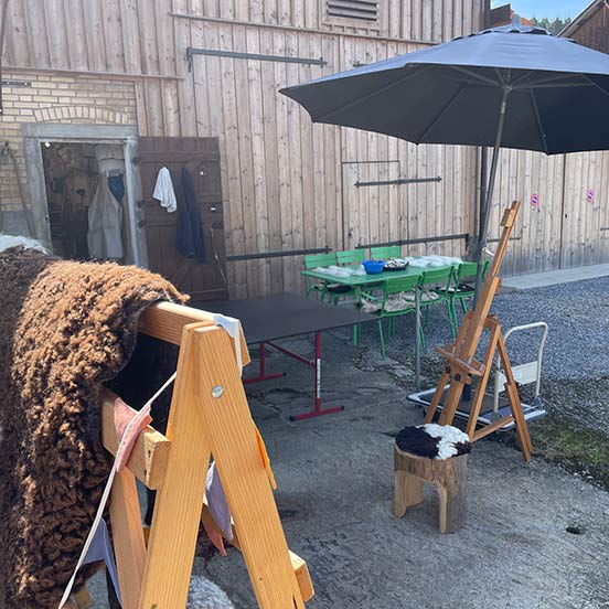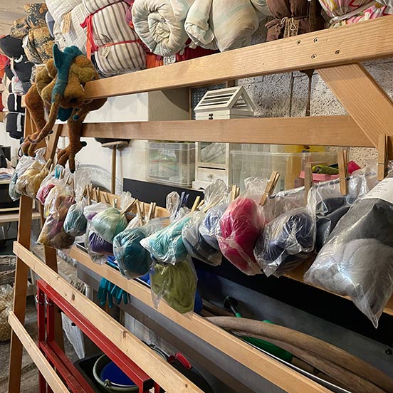 Zwei Sitzkissen mit Walliser Schwarznasenlocken filzen.