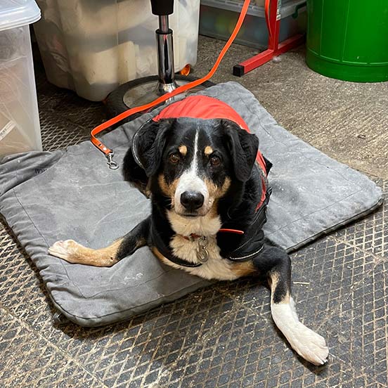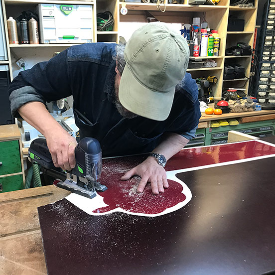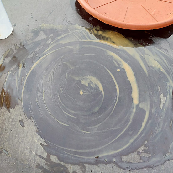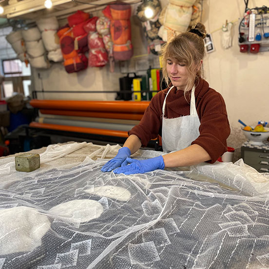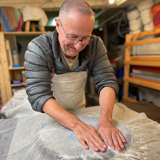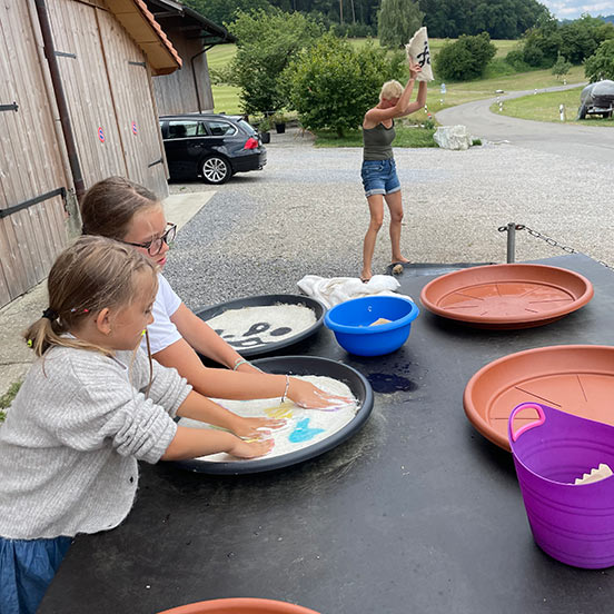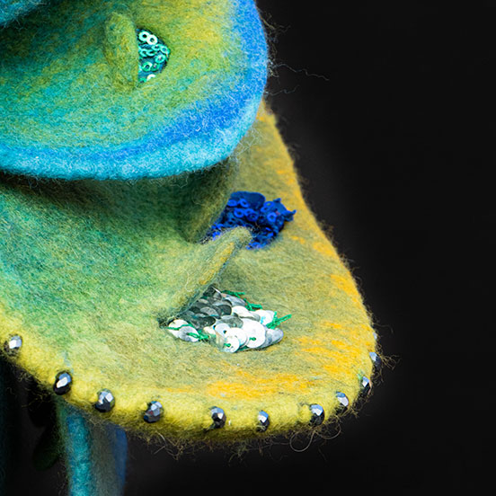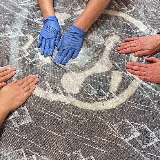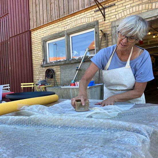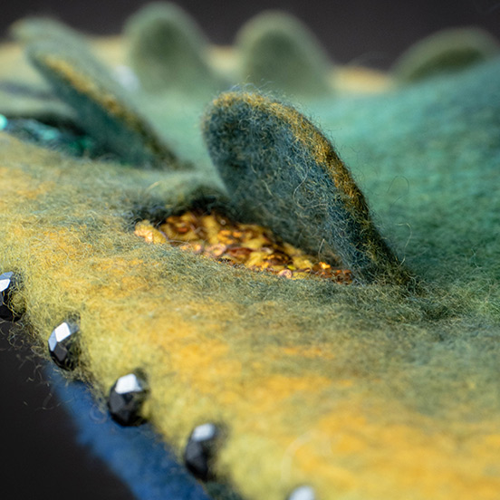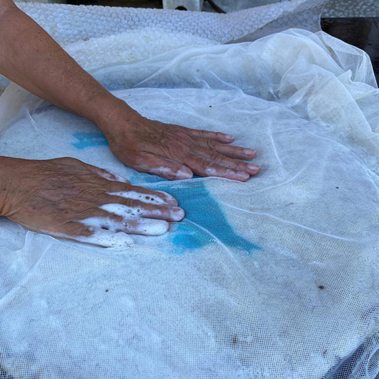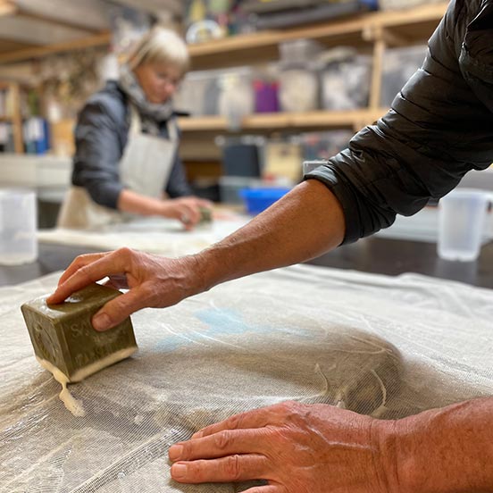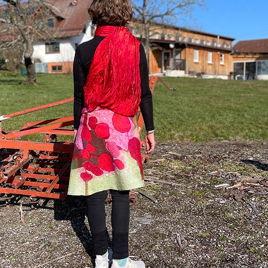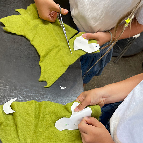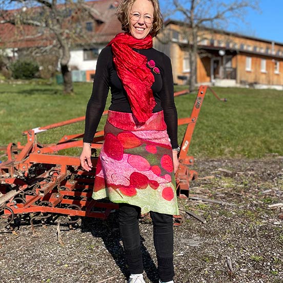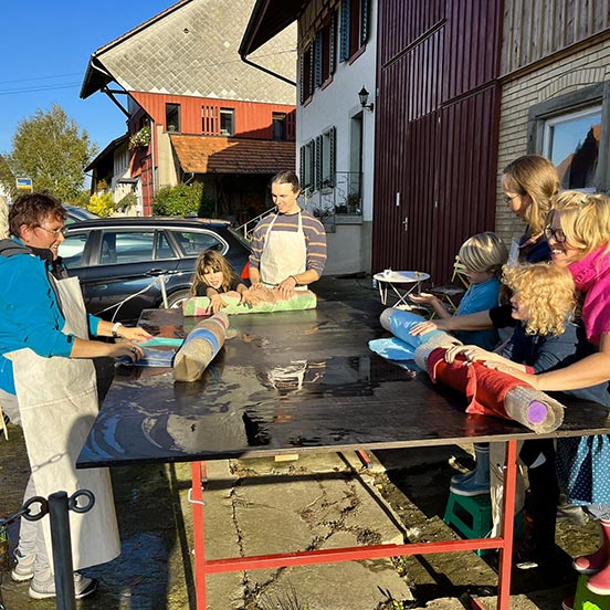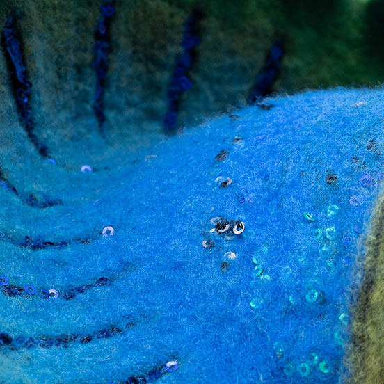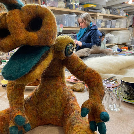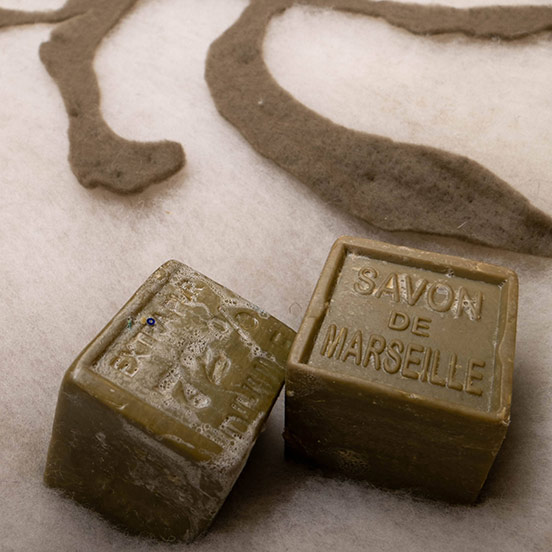 Ein Sitzkissen mit Walliser Schwarznasenlocken filzen.