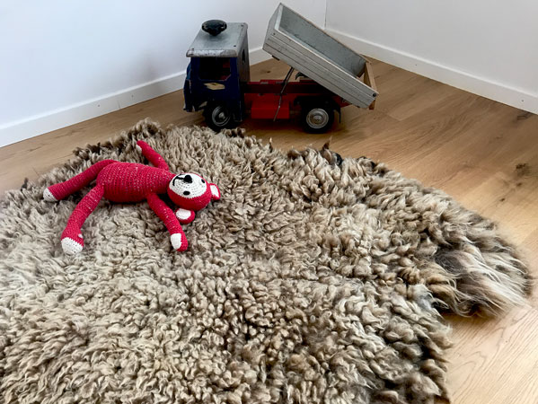 Kann sein, dass hie und da noch Samen oder Heideteilchen aus der Wolle lugen. Macht nichts. Das ist der besondere Charakter des Schafes und zeugt vom freien Leben in der Natur, bevor der Rohstoff zu Jawoll kommt: Milchkaffeefarbige, pure, wellige Wolle, die ganz ohne Leder zu lieben Begleitern werden. In jeder Form, Grösse und 100 % Wolle. Das macht sie robust und waschbar.